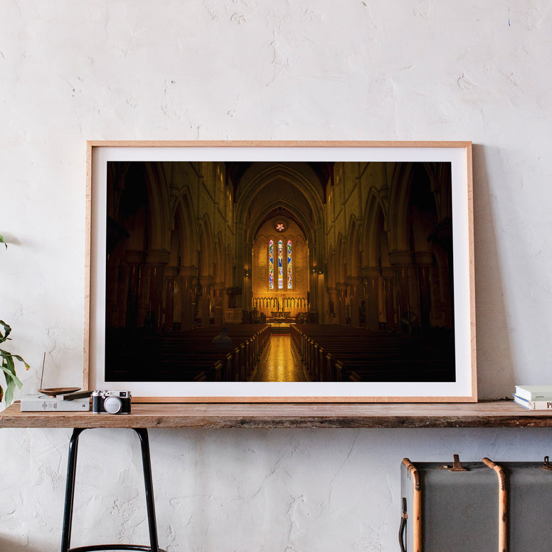 Inside the Cathedral of the Most Holy Trinity in downtown Hamilton, the light gathers softly at the altar and pours through stained glass in warm, quiet colors. The arches rise overhead, steady and timeless, forming a corridor of calm that leads your eyes straight to the heart of the room. It’s a space built for stillness — no rush, no noise — just the kind of peace that comes from being somewhere that has held generations before you.