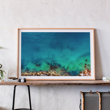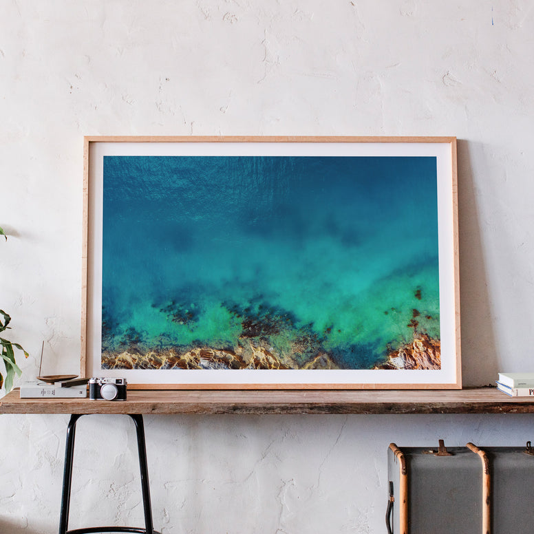 Taken from above, this image captures the exact point where Bermuda’s land gives way to its turquoise sea. Rock and reef fade into shifting gradients of blue, like the island is dissolving into the water. There’s no movement here — just depth, texture, and the quiet contrast of shore and ocean living side by side.